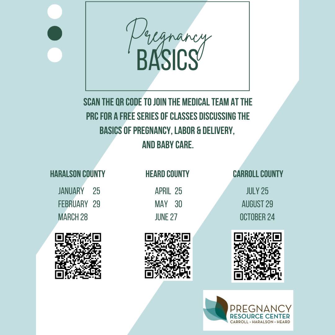 Here at PRC, we offer Labor & Delivery Basics classes. Labor & Delivery Basics is an education program catered to expectant parents of Carroll, Haralson and Heard counties. During this program, you will learn the foundational basics of what to expect when you're expecting! No cost to attend. Register: https://pregnancyrc.kindful.com/e/pregnancy-basics-series-haralson-county