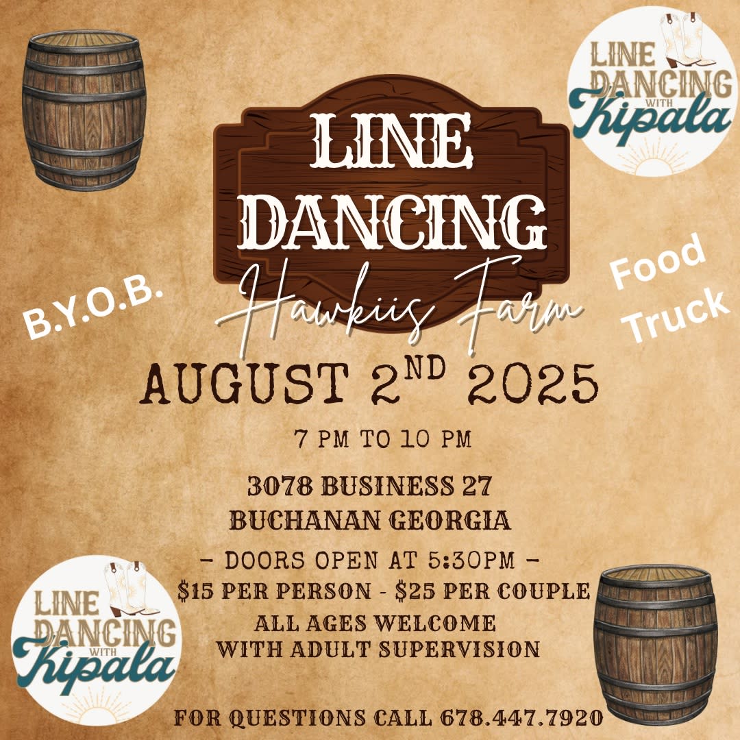 Join Hawkiis Farm for a line dance instruction from 7PM to 10PM. BYOB and Food Truck! Instructor: Line Dancing with KipalaImages