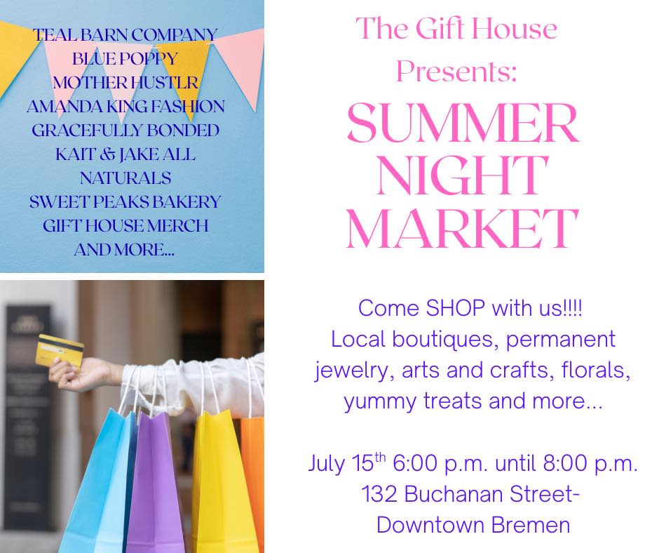 Come and shop at the Summer Night Market at The Gift House! They will have local boutiques, permanent jewelry, arts and crafts, florals, yummy treats and more.Images